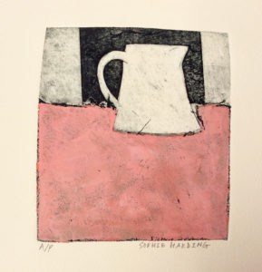 Jug on Pink collagraph and oil