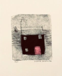 St Ives House and Boat collagraph