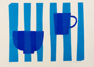 Bowl and Cup on Stripes monoprint