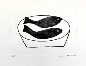 Fish in a Dish drypoint etching