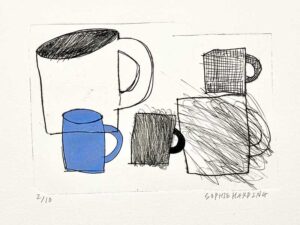Black Cup and White Cup on Blue monoprint